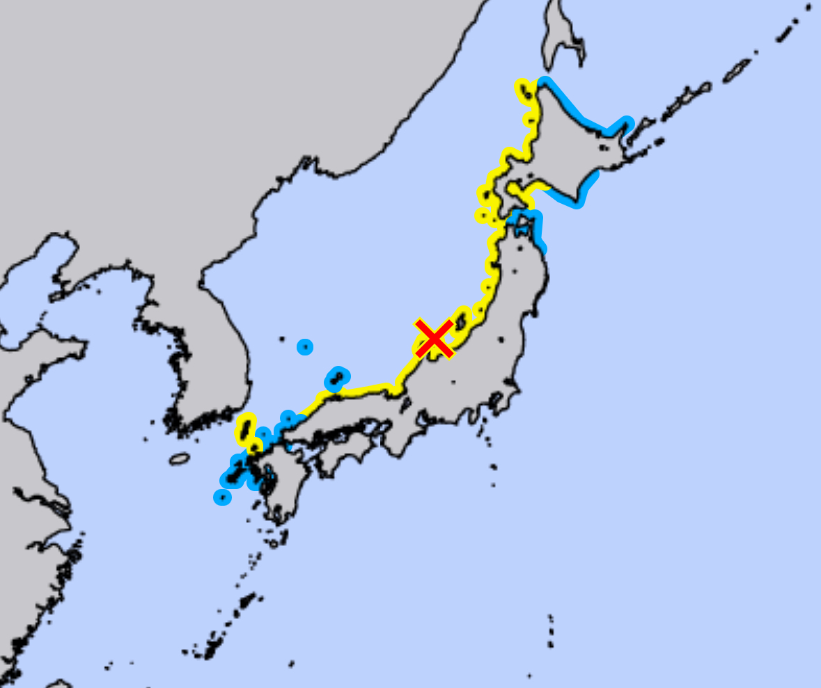 la Agencia Meteorológica de Japón actualizó sus recomendaciones por tsunami.Se espera un tsunami de hasta 1 metro en diferentes lugares ubicados en la costa este del archipiélago nipón: