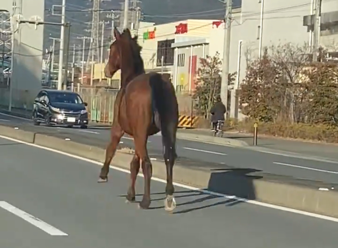 KANAGAWA.- Conductores reportaron en las redes sociales la presencia de un caballo corriendo por una carretera.