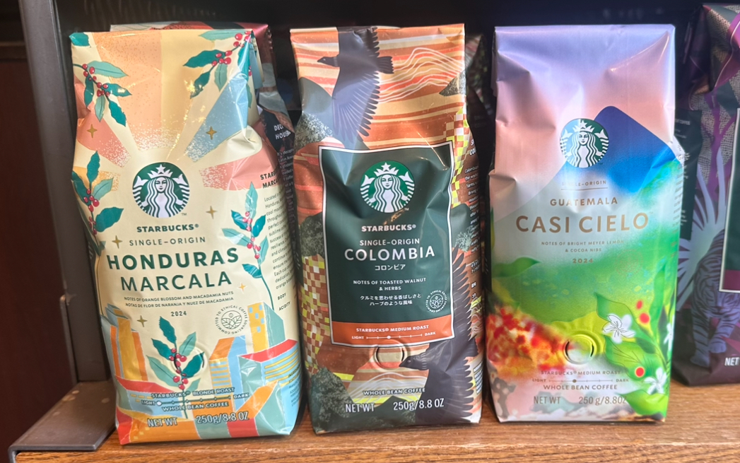 Starbucks también comercializa en otras temporadas del año café de Brasil, Costa Rica, El Salvador, México, Panamá, Perú y Puerto Rico.