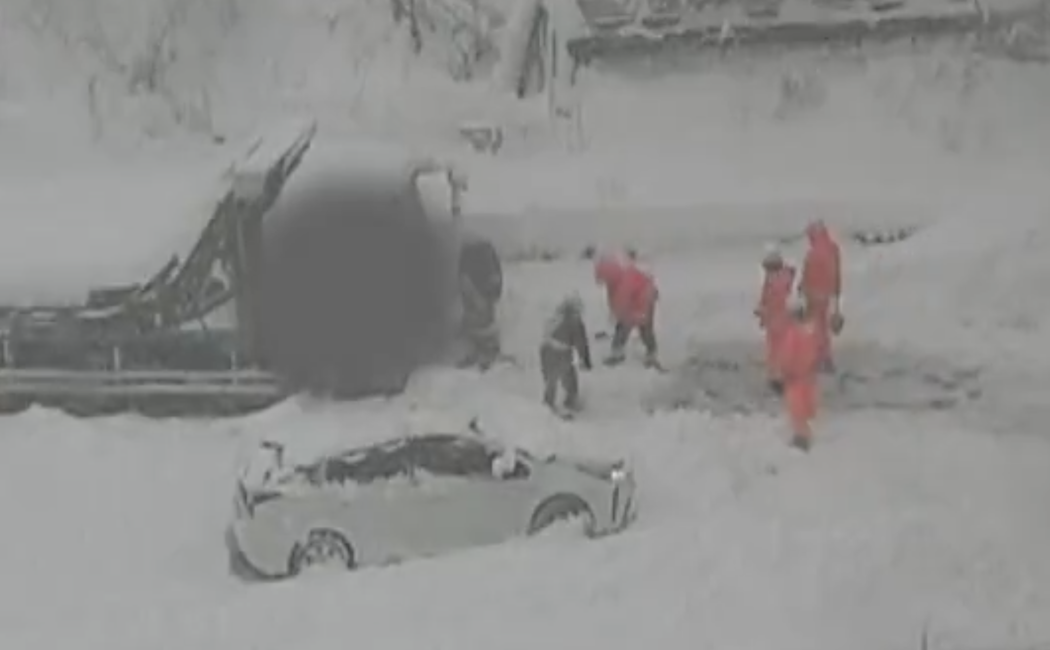 En un video publicado por NEXCO Central Japan, se muestra a trabajadores retirando nieve cerca de las ruedas de un camión grande cerca del intercambiador de Sekigahara.