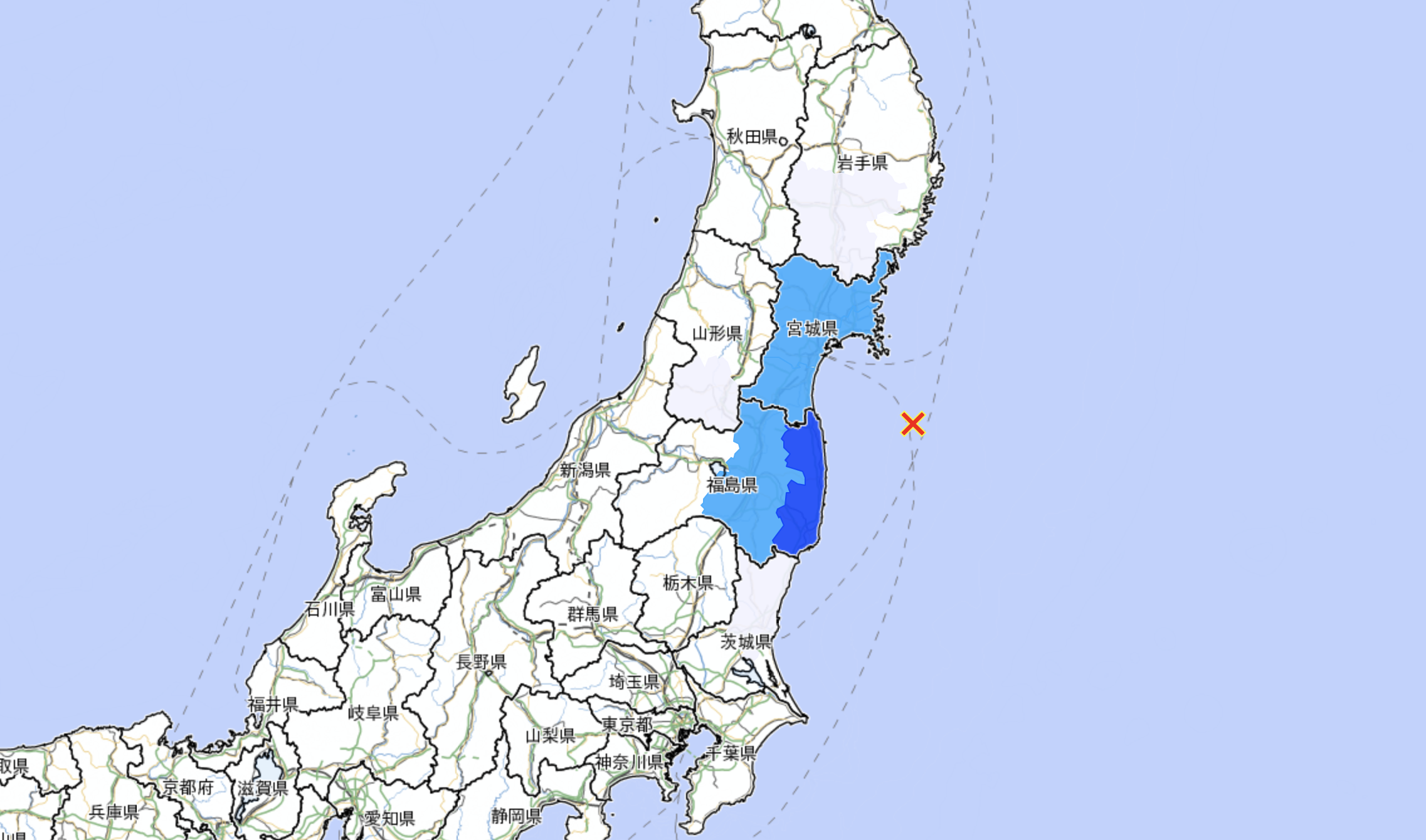 - Miyagi: Ciudad de Ishinomaki, Ciudad de Natori, Ciudad de Kakuda, Ciudad de Iwanuma, Ciudad de Tome, Ciudad de Kurihara, Pueblo de Marumori, Pueblo de Watari, Pueblo de Yamamoto, Pueblo de Wakuya, Pueblo de Misato Prefectura de Fukushima: Ciudad de Soma, Ciudad de Nihonmatsu, Ciudad de Tamura, Ciudad de Minamisoma, Ciudad de Date, Pueblo de Kunimi, Pueblo de Kawamata, Pueblo de Naraha, Pueblo de Okuma, Pueblo de Futaba, Pueblo de Namie, Pueblo de Shinchi