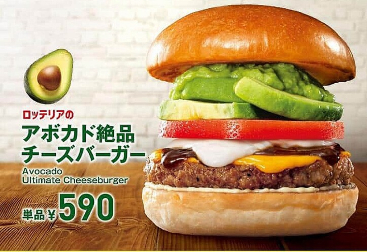 El «Avocado Superb Cheeseburger» cuesta 590 yenes y contiene un filete de carne de res al 100% con una mezcla de cuatro quesos y una salsa de queso cheddar fundido, rodajas de palta de Perú, guacamole hecho con aguacate de México, tomate en rodajas y una salsa BBQ ahumada, todo servido en un pan suave y esponjoso.