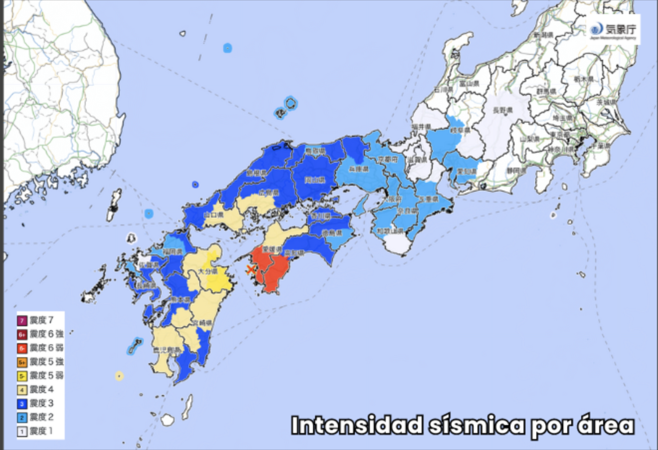 El epicentro del sismo se ubicó en el canal de Bungo, en una zona que un panel gubernamental ha indicado podría experimentar un devastador terremoto de magnitud al menos 8.0 en los próximos 30 años.