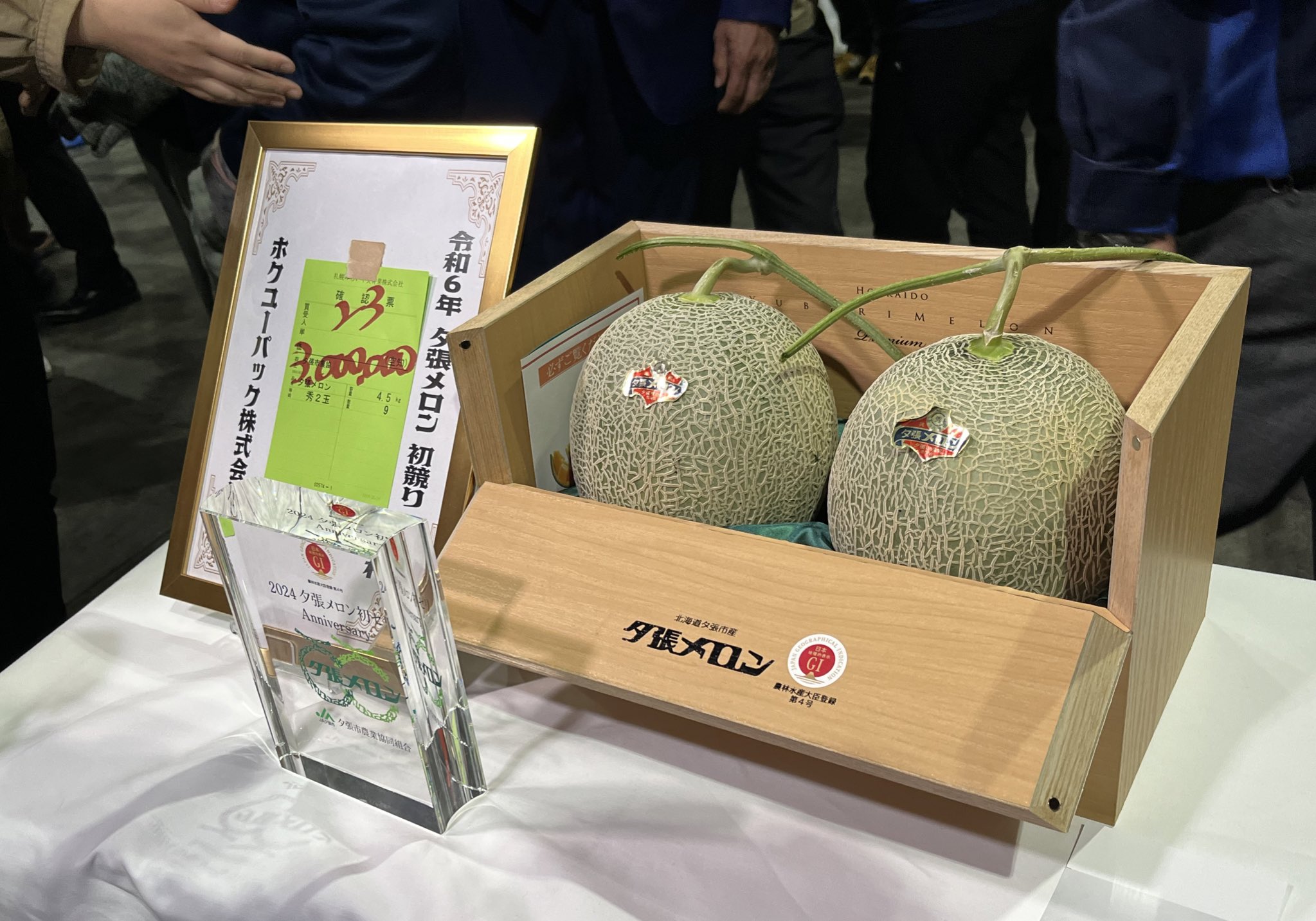 La subasta se realizó a las 7 de la mañana en el Mercado Mayorista Central, donde una empresa de la ciudad de Yūbari compró dos melones por 3 millones de yenes, el precio más alto de la jornada.