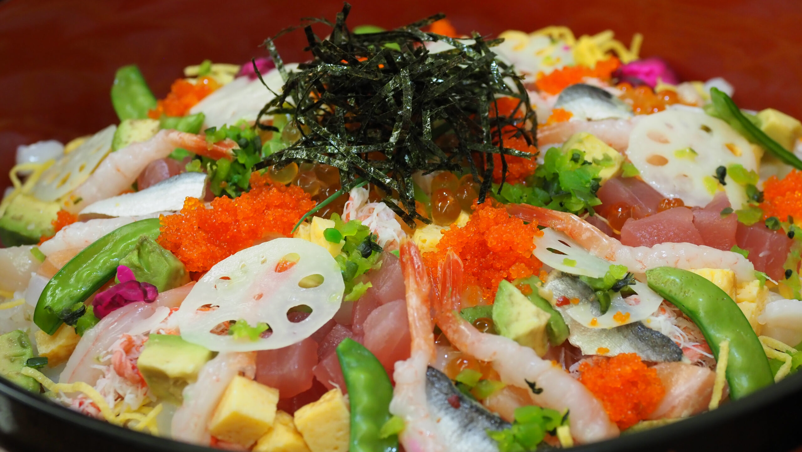 El chirashizushi, también conocido simplemente como «chirashi», es un tipo de sushi en el que diversos ingredientes se mezclan con arroz avinagrado.