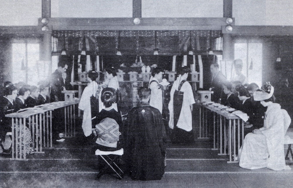 Esta ceremonia sirvió como modelo y, en 1902, se celebró la primera boda Shinto formal en el santuario.