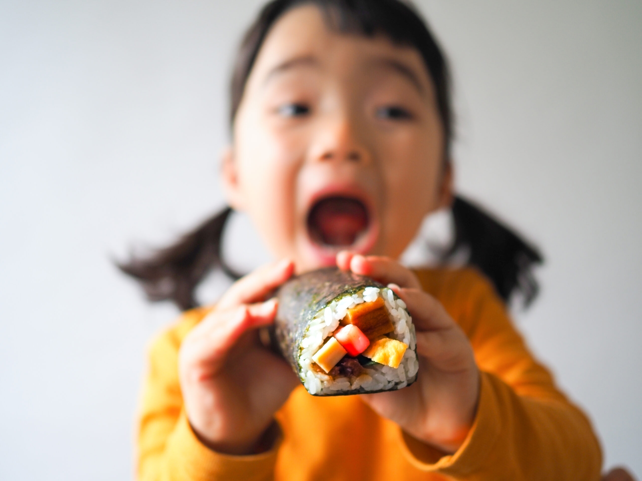 La tradición de comer maki sushi (enrollado de sushi) mirando hacia la dirección auspiciosa del año Ehō en Setsubun se cree que trae felicidad.