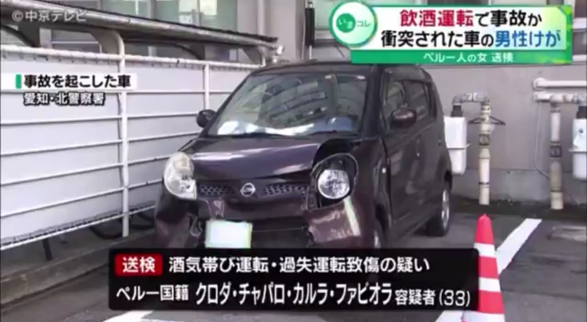AICHI.- La policía Prefectural reportó la detención de una extranjera por provocar un accidente automovilístico al conducir en estado de ebriedad.