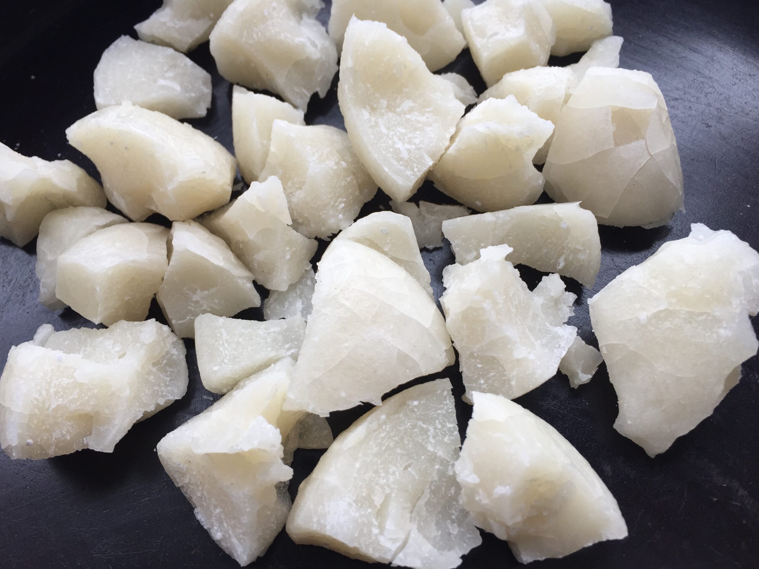 Por ello, se utilizaban manos o mazos de madera para partirlo, un acto que se describía con el término “abrir” (開く) en lugar de “cortar” (切る) o “romper” (割る).