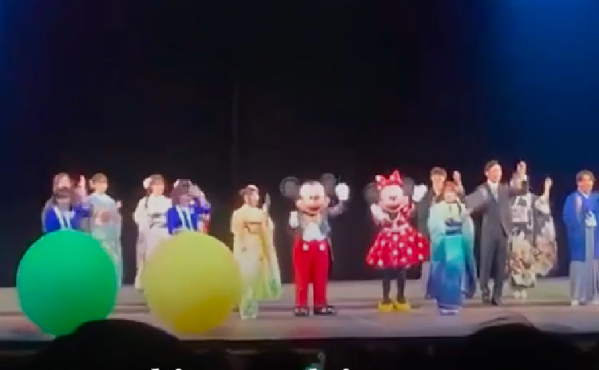 Este evento, que simboliza la transición a la adultez en Japón, se realizó en el Broadway Music Theatre, donde personajes icónicos de Disney, como Mickey Mouse y sus amigos, ofrecieron un espectáculo especial lleno de canto y baile, creando un ambiente mágico y único para los participantes.