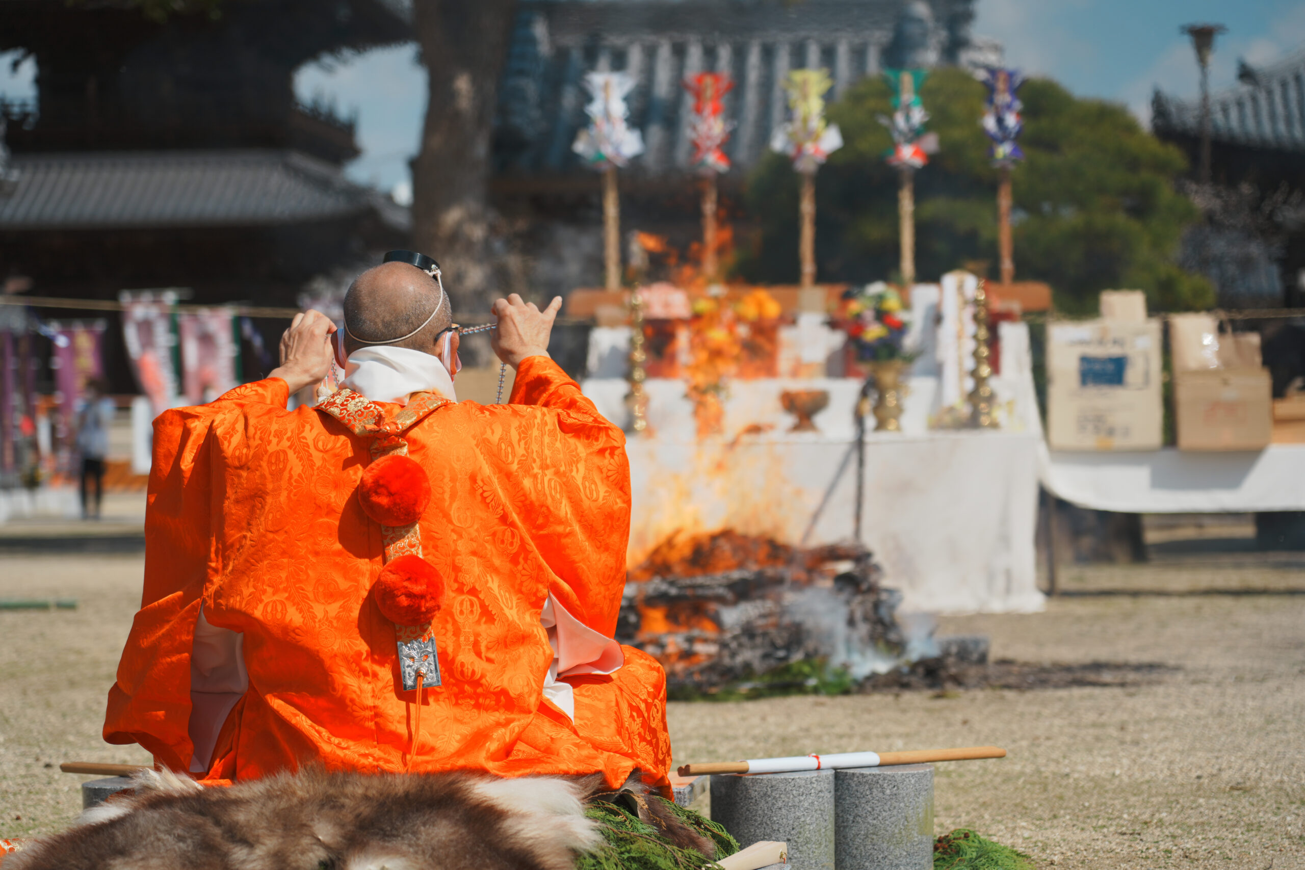 Este ritual consiste en quemar decoraciones de Año Nuevo, como shimenawa y kadomatsu, en grandes hogueras. Se cree que el humo que asciende lleva consigo las oraciones de las personas y purifica sus almas, asegurando un buen inicio de año.