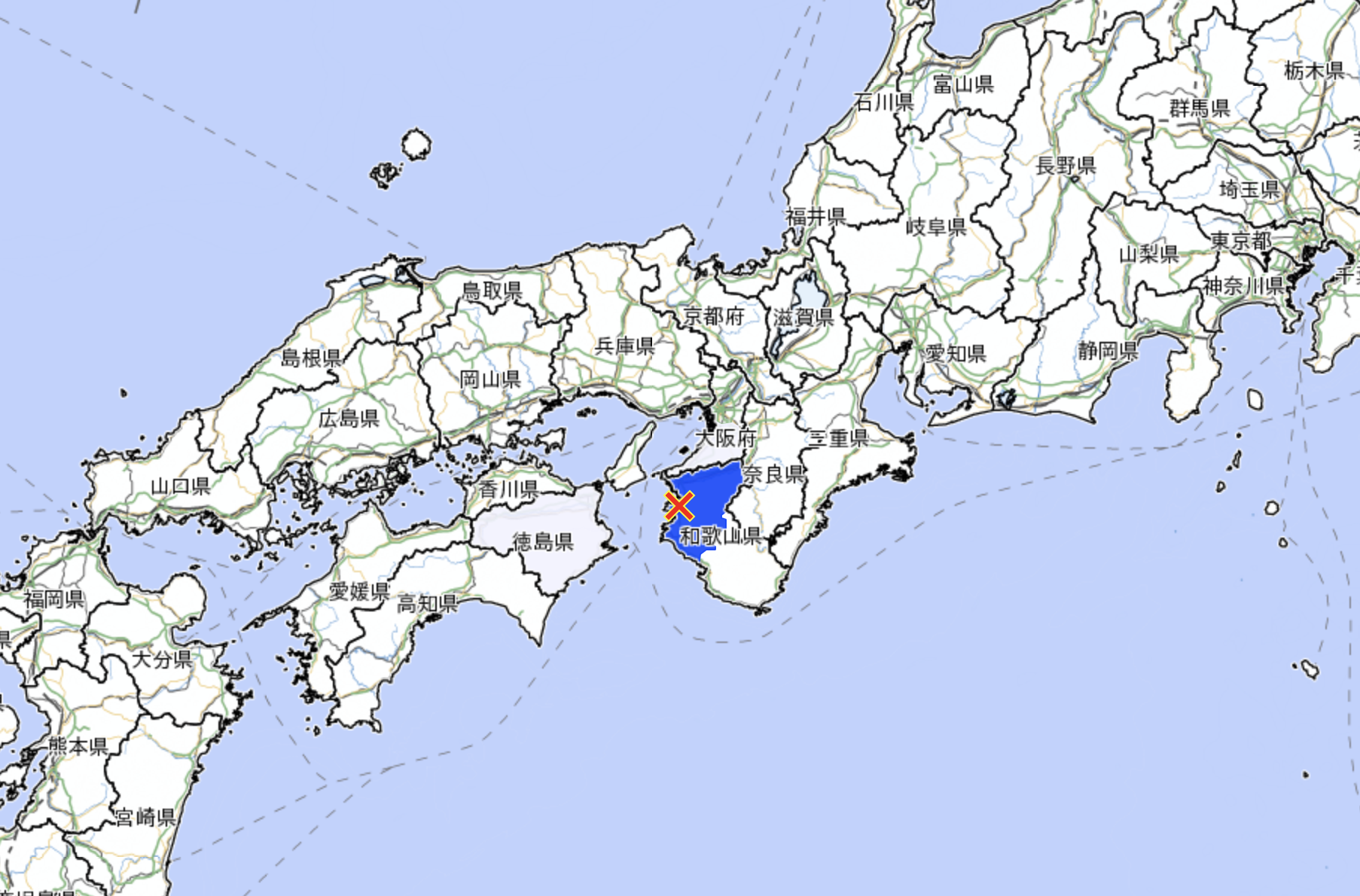 - Ubicación del epicentro: Norte de Wakayama (latitud 34.1° N, longitud 135.2° E).