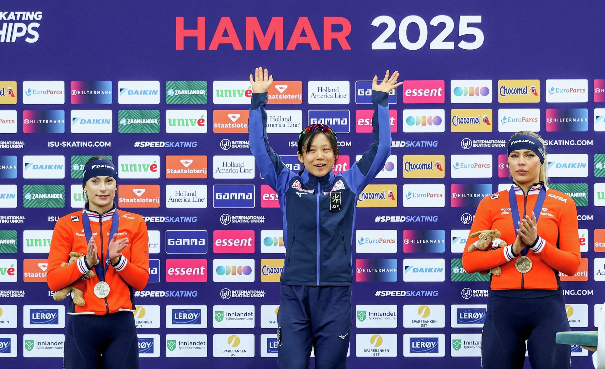 NORUEGA.- La japonesa  Takagi Miho logró un nuevo hito en su carrera al ganar la medalla de oro en los 1,000 metros femeninos en el Campeonato Mundial de Patinaje de Velocidad, celebrado en Hamar.