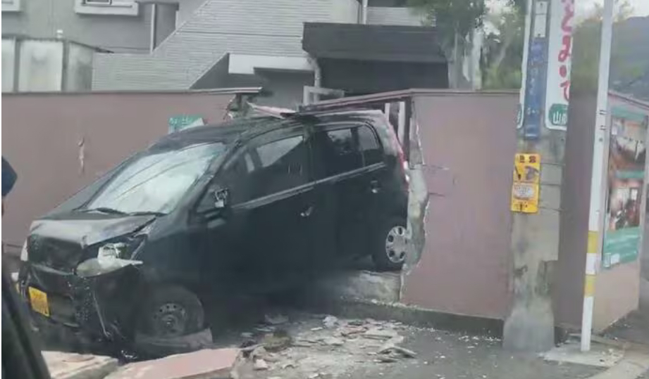 Una mujer de edad avanzada (alrededor de 70 años) estaba manejando un auto pequeño (lo que en Japón se llama un kei car, que son autos compactos y livianos) y chocó contra una pared del estacionamiento de un edificio de apartamentos (mansión).