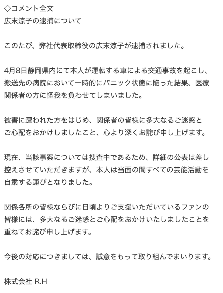 Comunicado Sobre el arresto de Ryoko Hirosue