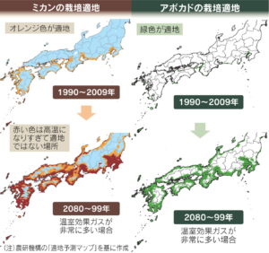 TOKIO.- El Instituto Nacional de Ciencia y Tecnología Agrícola y Alimentaria de Japón hizo un estudio muy detallado para saber cómo va a cambiar el lugar ideal para cultivar frutas como el mikan y el abokado en el futuro, teniendo en cuenta los efectos del cambio climático.
