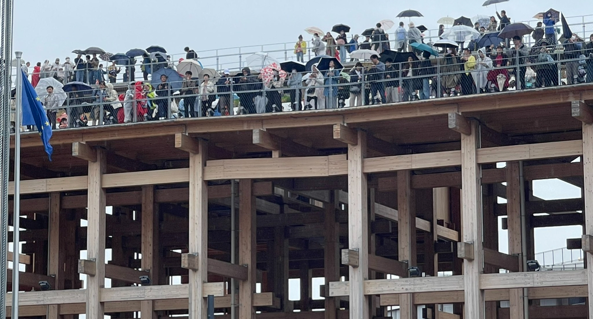 A primera vista, el gran anillo de madera que rodea el recinto principal de la Expo 2025 en Osaka puede parecer torcido o deformado.
