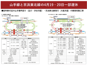 TOKIO.- Durante el fin de semana del sábado 19 y domingo 20 de abril, se suspenderán los servicios en importantes tramos de la línea Yamanote y la línea Keihin-Tohoku, dos de las más utilizadas por los residentes y turistas en la capital japonesa.
