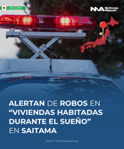 TOKIO.- Entre la noche del lunes 15 de abril y la madrugada del martes 16, varias casas en distintas ciudades de la prefectura de Saitama fueron robadas mientras los residentes dormían.