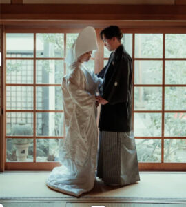 •Alquiler de vestimenta tradicional (白無垢 para la novia y 紋付袴 para el novio).