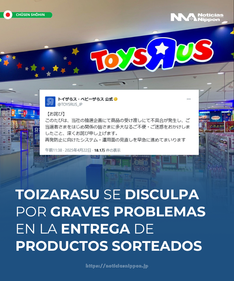 TOKIO.- La conocida cadena de juguetes Toysrus Japón publicó una disculpa oficial en su cuenta de X (antes Twitter) tras una serie de denuncias en redes sociales sobre problemas graves en la entrega de productos sorteados.