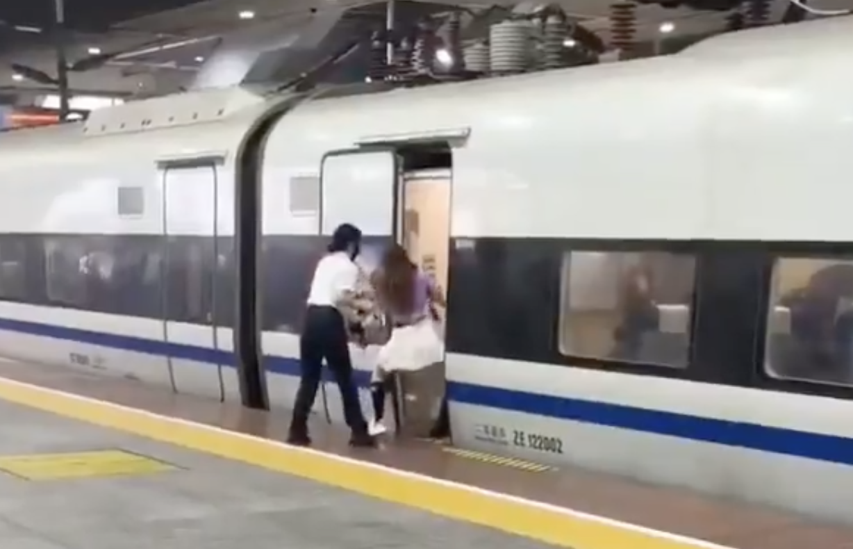 El episodio ocurrió hacia la 1:00 p.m. del 18 de abril, en el andén de la estación Shenzhen Norte, una de las más importantes del sur del país. Justo cuando las puertas del tren de alta velocidad estaban a punto de cerrarse, la mujer extendió su pierna y la colocó entre las puertas, impidiendo su cierre.