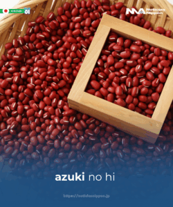 Es el “Azuki no hi – あずきの日 (Día del Azuki), una efeméride establecida por la empresa Imuraya Group Co., Ltd., con sede en la ciudad de Tsu, prefectura de Mie, famosa por elaborar productos como el “yude azuki” (azuki cocido) y mezclas para preparar el clásico arroz festivo con azuki conocido como osekihan.