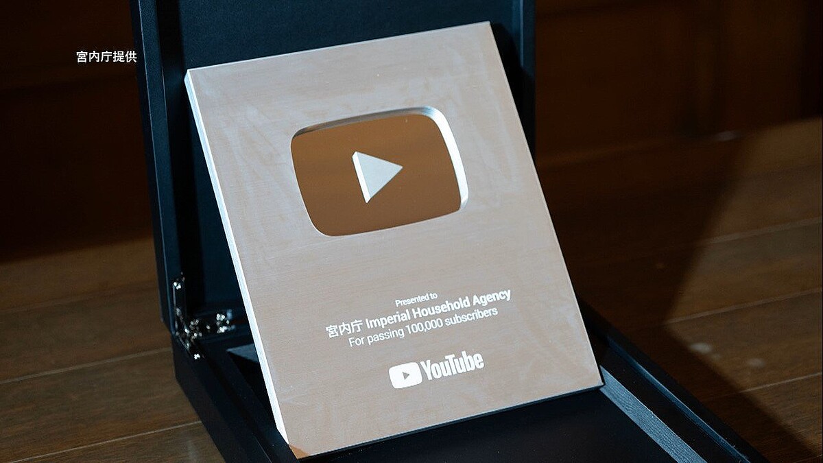 YouTube hizo llegar al Palacio Imperial el galardón, que lleva inscrito el nombre “宮内庁” y el mensaje de reconocimiento por superar los 100 mil seguidores.