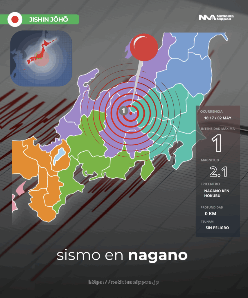 La tarde del viernes, un leve sismo fue registrado en la región norte de la prefectura de Nagano , una zona montañosa conocida tanto por su belleza natural como por su compleja actividad tectónica.
