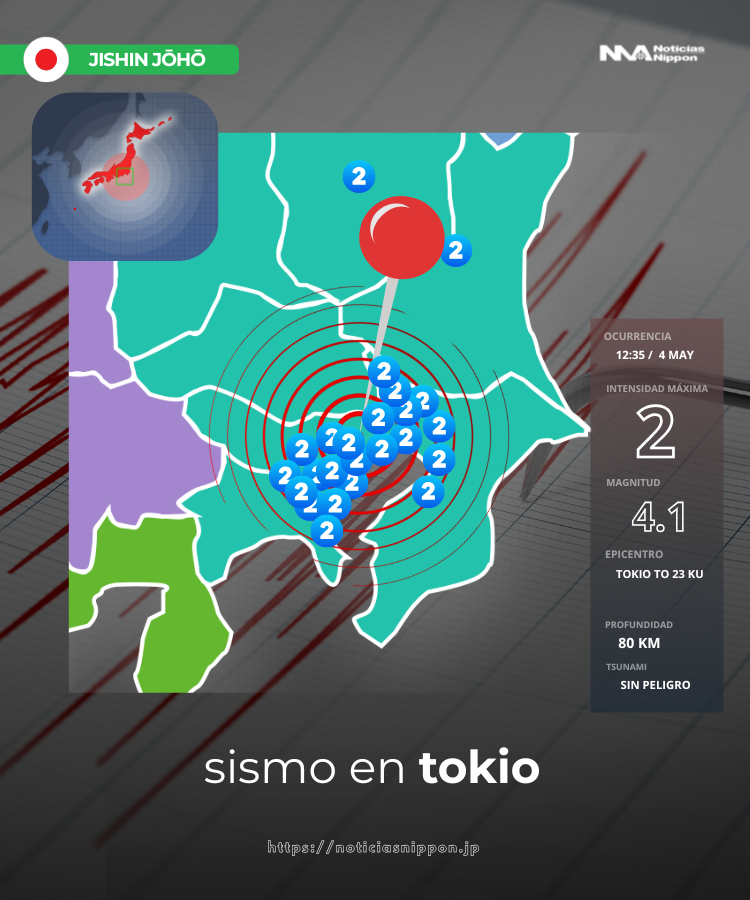 •Intensidad máxima registrada:Shindo 2 (nivel moderado que se percibe como una sacudida clara pero no peligrosa)