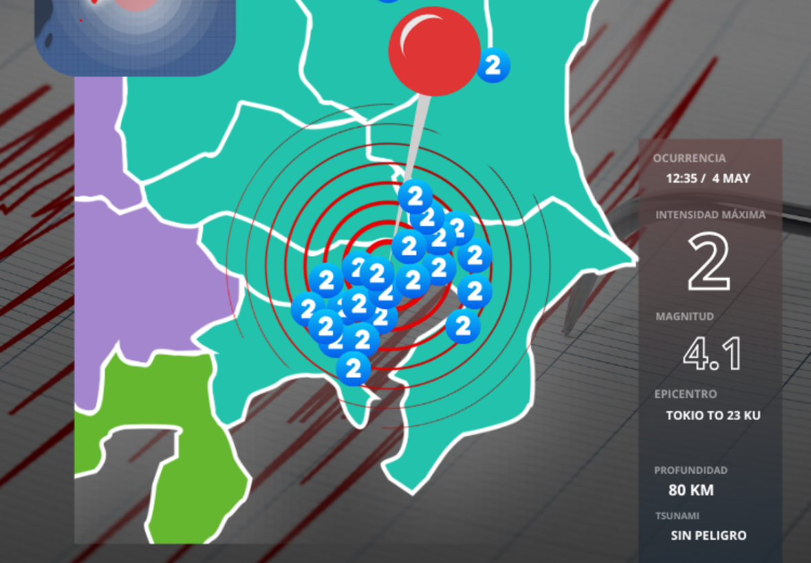 Hoy domingo, a las 12:35 del mediodía, se registró un terremoto de magnitud 4.1 con epicentro en la zona de los 23 distritos centrales de Tokio.