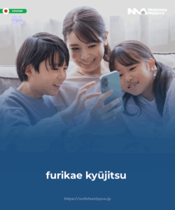 •furikae kyūjitsu – 振替休日 = feriado que se mueve al lunes si cae en domingo.