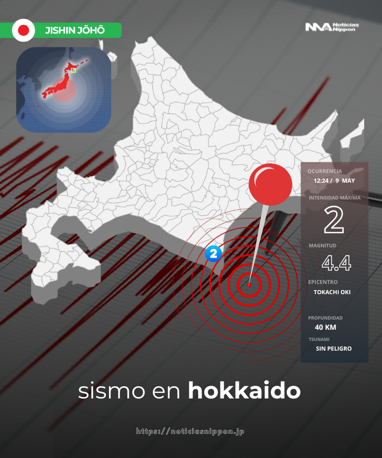 La intensidad máxima observada fue de Shindo 2 (una escala japonesa que mide la intensidad del movimiento en la superficie y no solo la energía liberada). Aunque no es un nivel que cause pánico o daños, sí puede sentirse como un leve sacudón en viviendas, sobre todo si la persona está en reposo.