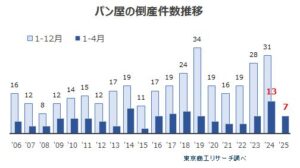 Según el informe de la firma Tokyo Shoko Research, en los primeros cuatro meses de 2025 solo se han registrado 7 quiebras de panaderías con deudas superiores a 10 millones de yenes.