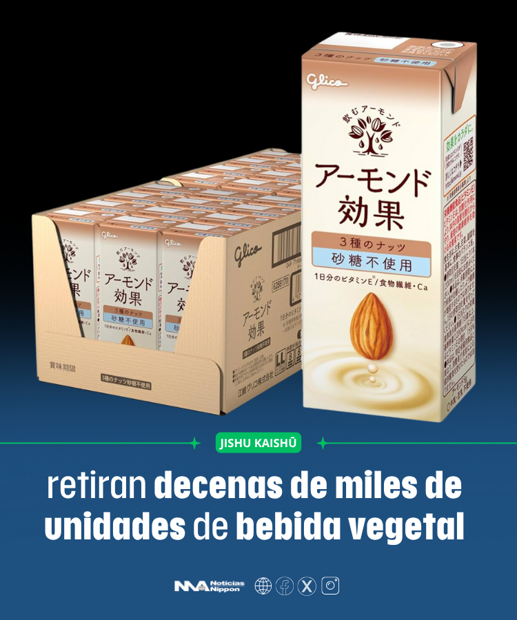 La reconocida empresa alimentaria Ezaki Glico, anunció el retiro voluntario (自主回収 / jishu kaishū) de 27,096 unidades de su bebida vegetal “Almond Effect”, tras recibir una queja por sabor agrio y presencia de grumos.
