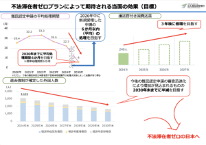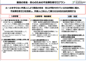 Es una nueva estrategia del gobierno japonés cuyo objetivo es reducir a cero la cantidad de extranjeros que se quedan en el país de manera ilegal (sin permiso de residencia o con orden de deportación pendiente), especialmente aquellos que violan las leyes o abusan del sistema de asilo para permanecer más tiempo en Japón.