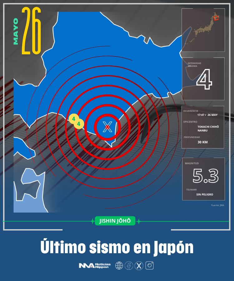El movimiento tuvo una profundidad de aproximadamente 50 km. La Agencia Meteorológica de Japón (JMA) confirmó que no hay riesgo de tsunami.