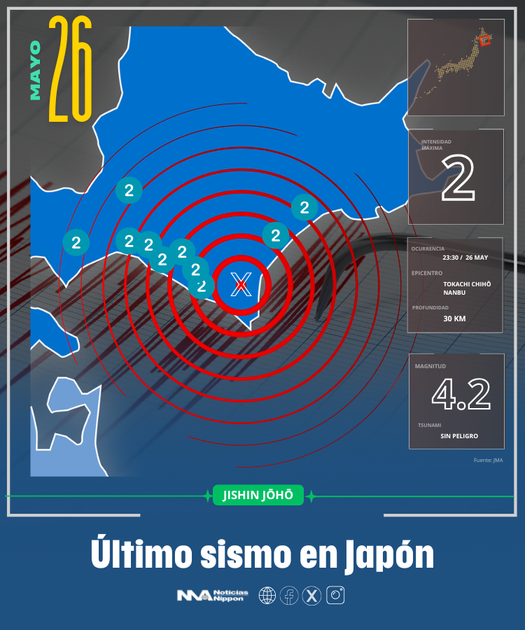 Según informó la Agencia Meteorológica de Japón (JMA) en su boletín de las 23:33 horas, el movimiento telúrico ocurrió a las 23:30, con un epicentro ubicado en latitud 42.3° norte y longitud 143.1° este, a una profundidad de aproximadamente 50 kilómetros.