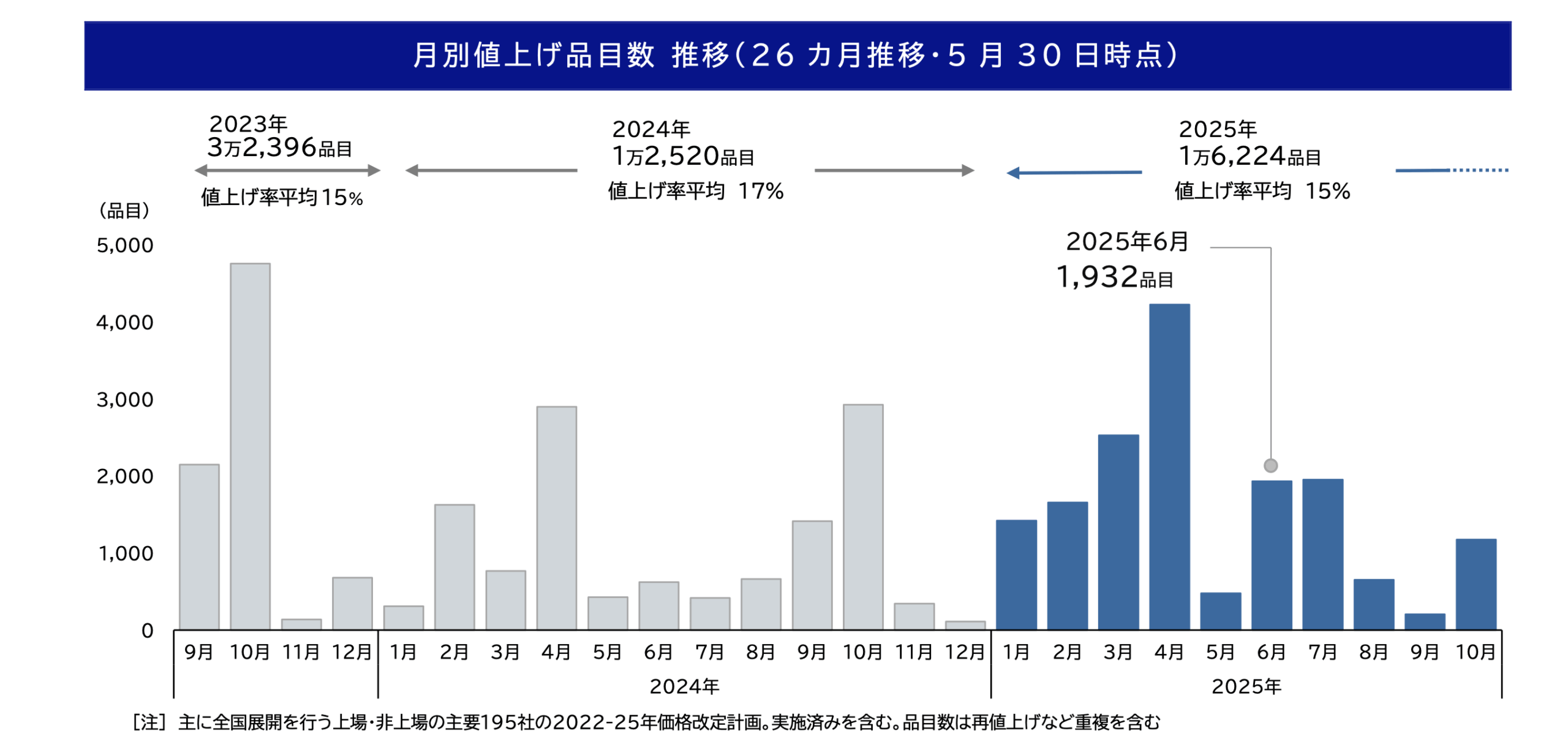 🔹 Indicador clave: Número mensual de productos con aumento de precios (品目数).