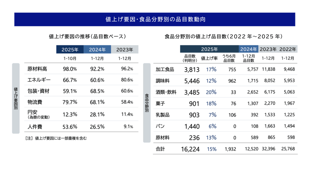 🔍 1. Evolución de las causas de aumento de precios (品目数ベース)