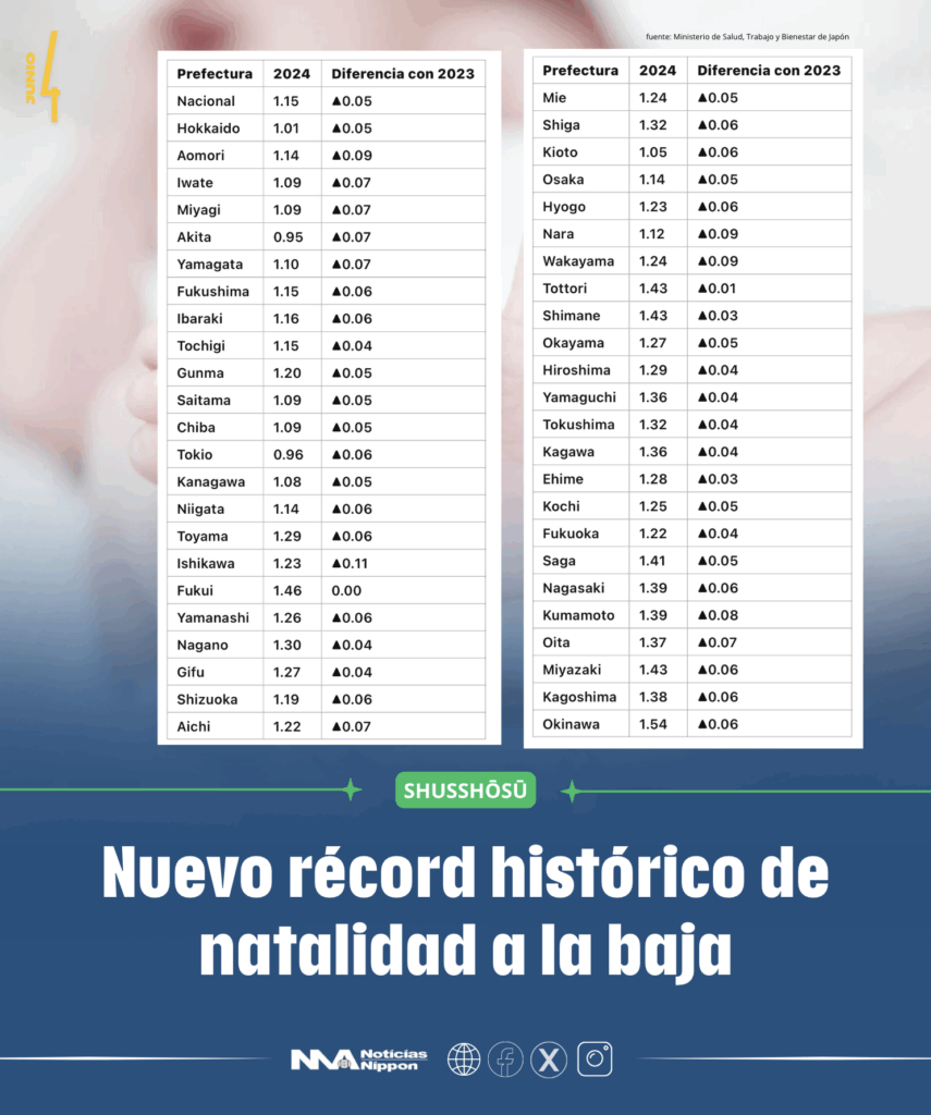 Nara y Wakayama: 1.12 y 1.24 respectivamente (▲0.09) – Estas áreas rurales también han visto un declive notable, reflejando desafíos para retener a las familias jóvenes.