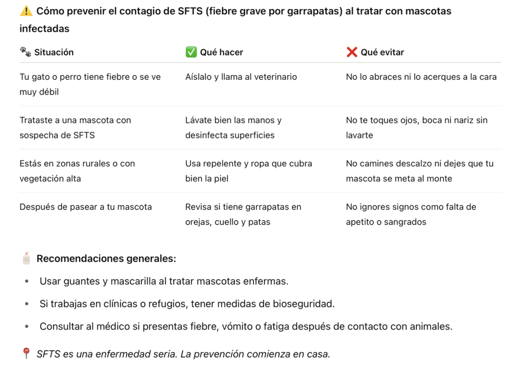 El SFTS (Síndrome de Fiebre Severa con Trombocitopenia) es una enfermedad grave que puede causar fiebre alta, vómitos, sangrados internos y, en algunos casos, la muerte.