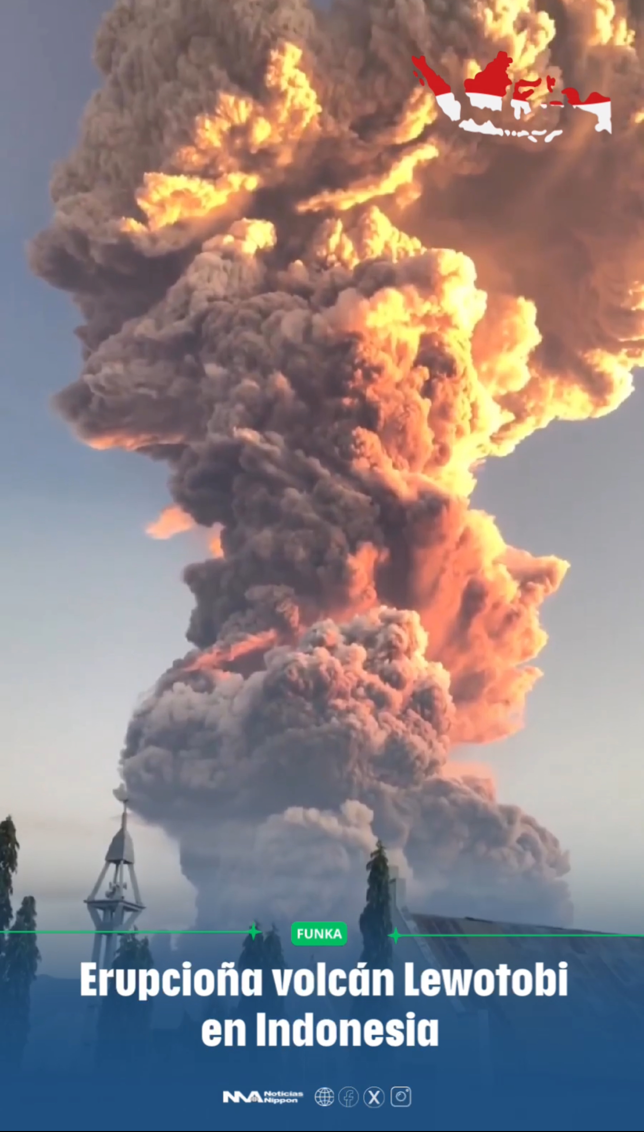 Se trata de una gran erupción registrada en el volcán Lewotobi, ubicado en la isla de Flores, al este del archipiélago indonesio.
