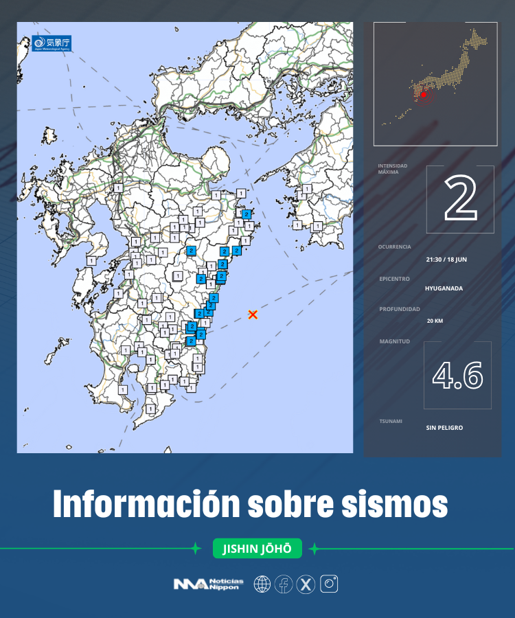 La Agencia Meteorológica de Japón informó que se trató de un sismo de magnitud 4.6, con epicentro en la zona marítima de Hyūga-nada, frente a la costa este de Kyūshū.