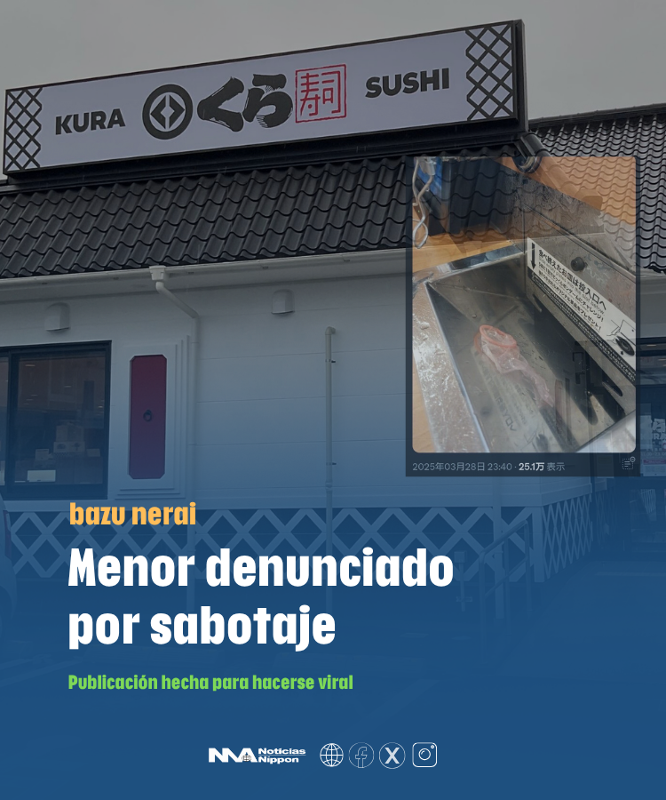 Esta vez, el protagonista fue un adolescente de 16 años, residente del distrito de Kita en Tokio, quien fue denunciado formalmente ante la fiscalía (書類送検・shorui sōken) por haber obstruido las operaciones de un restaurante de la cadena de sushi giratorio «Kura Sushi (くら寿司)«, tras realizar un acto ofensivo y difundirlo en redes sociales.