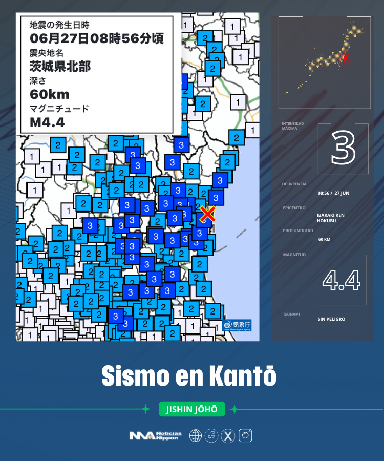 La magnitud estimada fue 4.4, una cifra que en Japón suele indicar un movimiento perceptible pero no destructivo. No obstante, por ser una región altamente sísmica, cada sismo es monitoreado con rigurosidad.