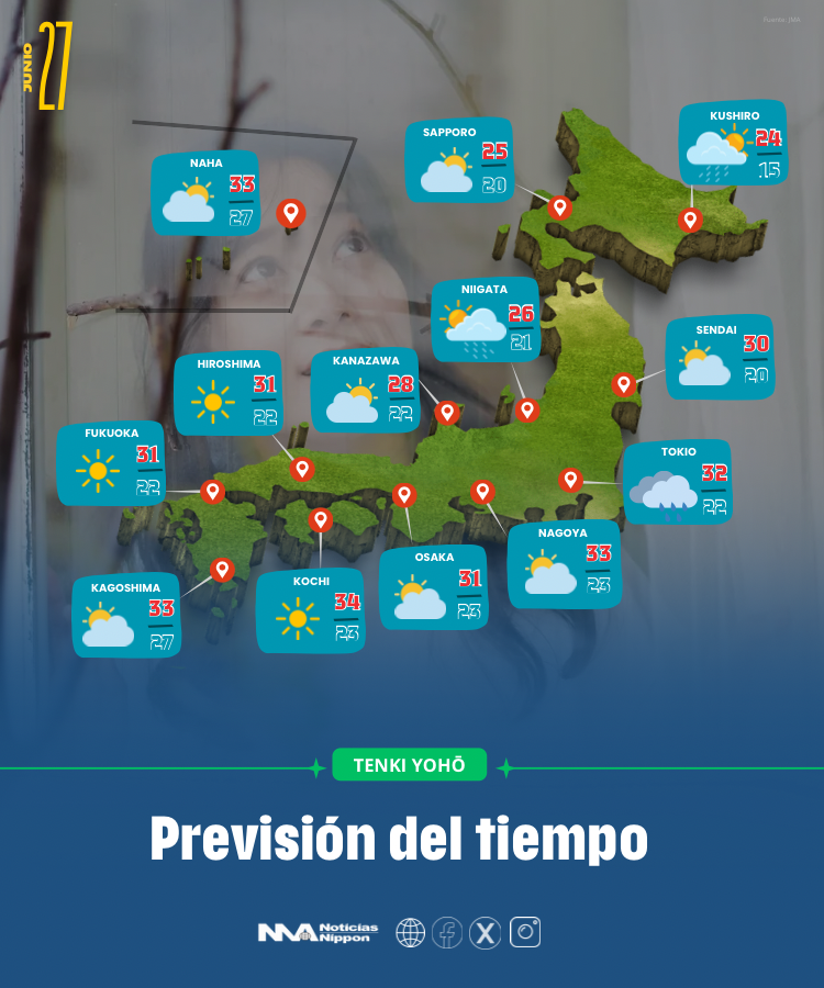 Se espera un ambiente de post-梅雨 (tsuyu, temporada de lluvias), aunque oficialmente el final aún no ha sido declarado.
