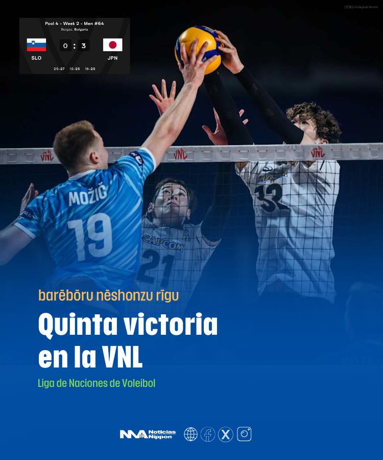 En el cierre de la segunda semana de la Volleyball Nations League (VNL), los nipones vencieron de manera categórica por 3-0 (27-25, 25-15, 25-16) a Eslovenia, una potencia del voleibol europeo que ocupa el quinto lugar del ranking de los Juegos Olímpicos de París 2024™.