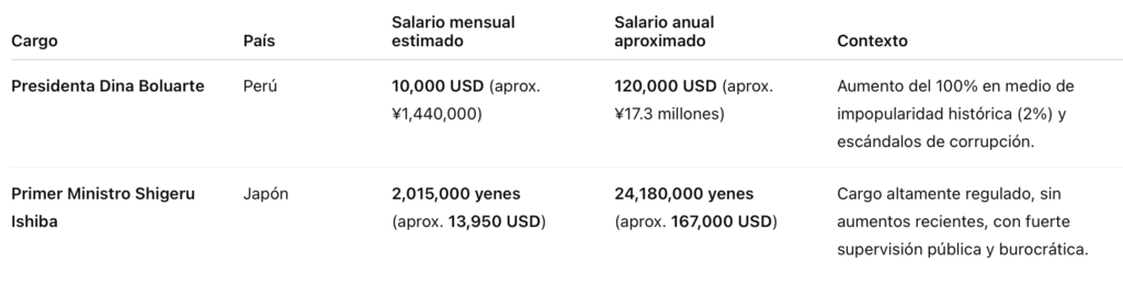🇯🇵 🇵🇪 Comparación con salario del primer ministro Ishiba Shigeru
