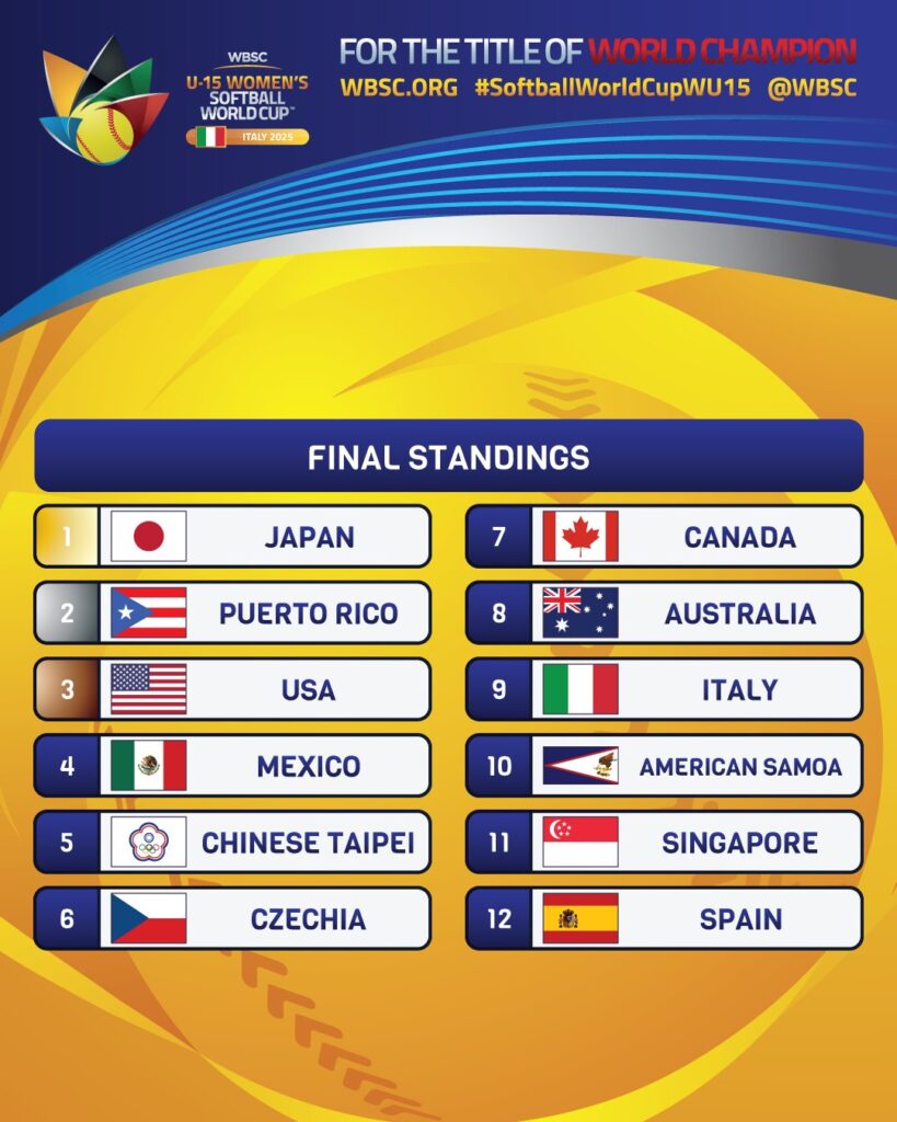 La selección femenina Sub-15 de Japón escribió este sábado (domingo 6 en Tokio) una nueva página dorada en la historia del deporte juvenil al proclamarse campeona del mundo en el WBSC U-15 Women’s Softball World Cup 2025, tras vencer por 4-0 a la potencia emergente de Puerto Rico.